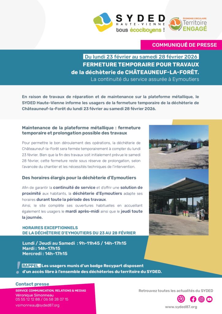 Fermeture temporaire de la déchèterie de Châteauneuf-la-Forêt